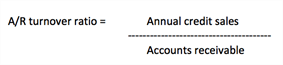The A/R turnover ratio is an average, determined by dividing your company’s annual credit sales by the average balance in accounts receivable at the same period.